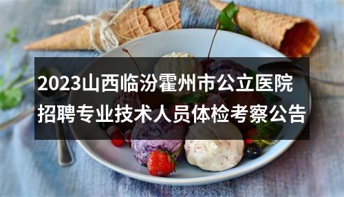 根据《霍州市2023年公开招聘公立医院专业技术人员实施方案》,现将体检考察相关事宜公告如下: